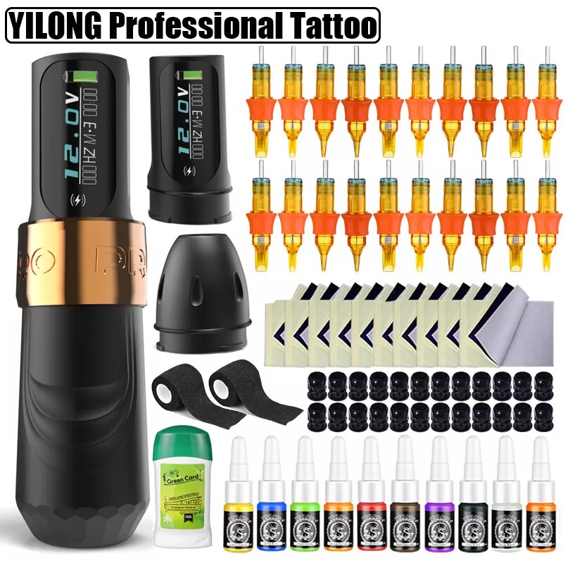 YILONG Coreless Motor Wireless Power Tattoo Gun Machine Makeup Pen Complete Kit 2000mAh - Silver