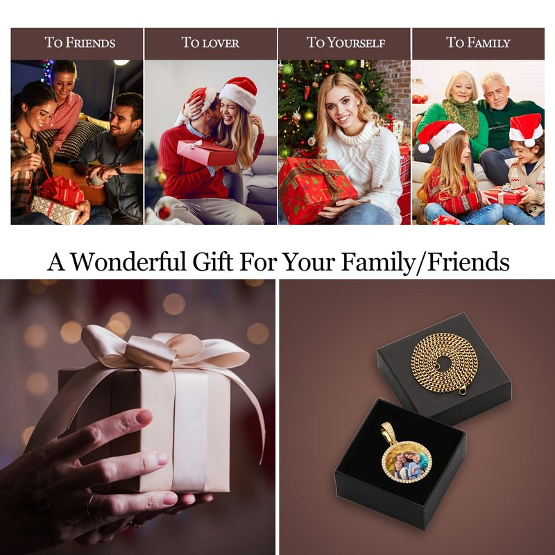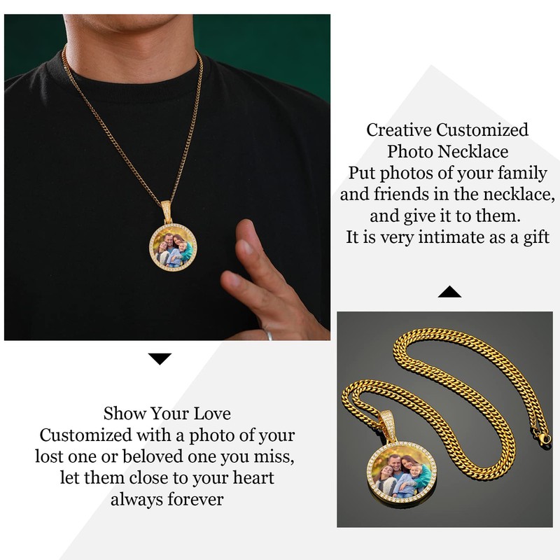 - Hip Hop Picture Necklace Material - The necklace with pic of loved one is made with AAA zircon+brass pendant and stainless steel chain, which are durable and sturdy to wear long time. Non-allergy, non-tarnish, high resistance to rust, corrosion and tarnishing. Memory photo necklace customized picture with protective covers on front surface that keep the photo away from moisture and scratch damage never fade.
