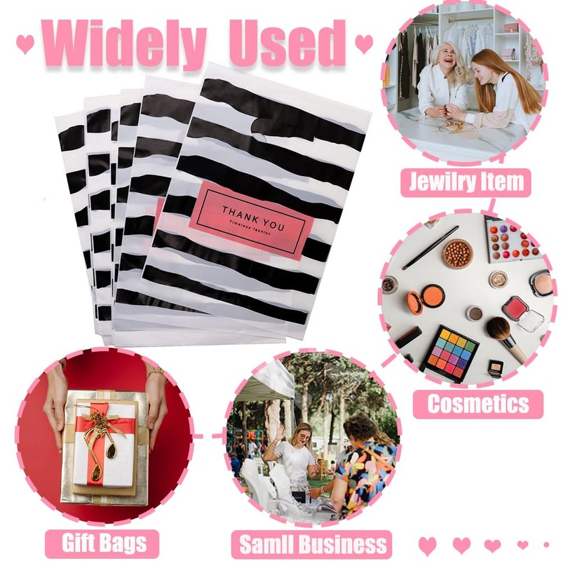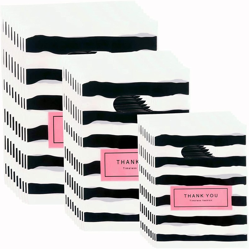 - 😊【Bags for Small Business 】YIMIKE black and white stripe thank you bags are suitable for holding various items, suitable for small business shopping bags, wholesale and bulk procurement.It is a good plastic merchandise retail bag for jewelry, necklace, small clothing, earring, and hair accessories, packing your goods perfectly and beautifully.