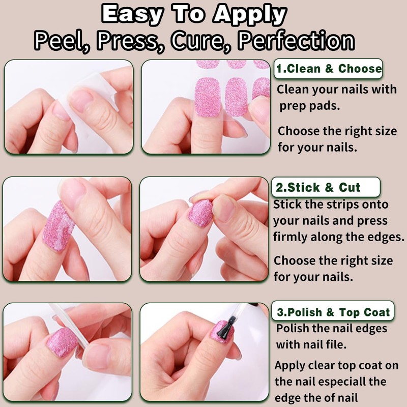 - Easy to Apply & Remove - Only need to spend one minute to stick the nail strips on the nail, press it without a UV nail lamp to fix it. Set of beautiful DIY nail strips came out. The nail polish stickers cover is also easy to peel off.