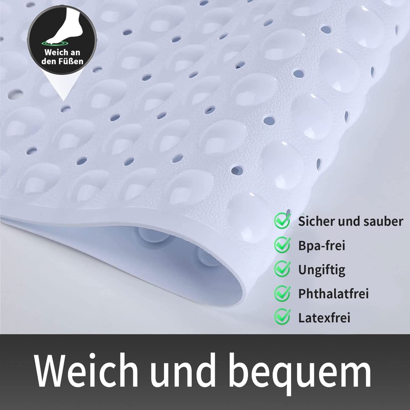 Yimobra Shower Mat, Non-Slip Shower Mat with Suction Cups, Safety Mould Resistant Bath Mat with Drainage Holes, Non-Slip Shower Mat, BPA Free, Machine Washable, 53 x 53 cm, White