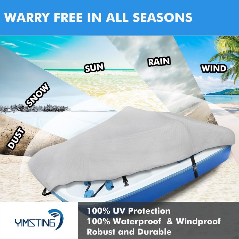 - [ 2 TO 3 TIMES SERVICE LIFE THAN OTHERS ]: YimSting Pedal Boat Cover will last 2 to 3 times longer than most other covers thanks to its abrasion resistance, UV protection, waterproof, and good windproof performance. We offer up to a 2 year way, buy with confidence.