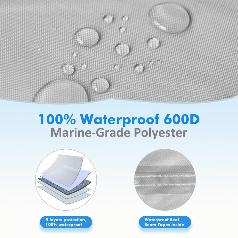 - [ 100% WATERPROOF BOAT COVER ]: Our Paddle Boat Cover is enhanced with waterproofing properties by treating 3-Layer water resistant coating on the backside of boat cover which can withstand up to 3000 Pa water pressure; We use waterproof seal sealing tapes in all seams, more impermeable than other covers, No water leaking through the seams.