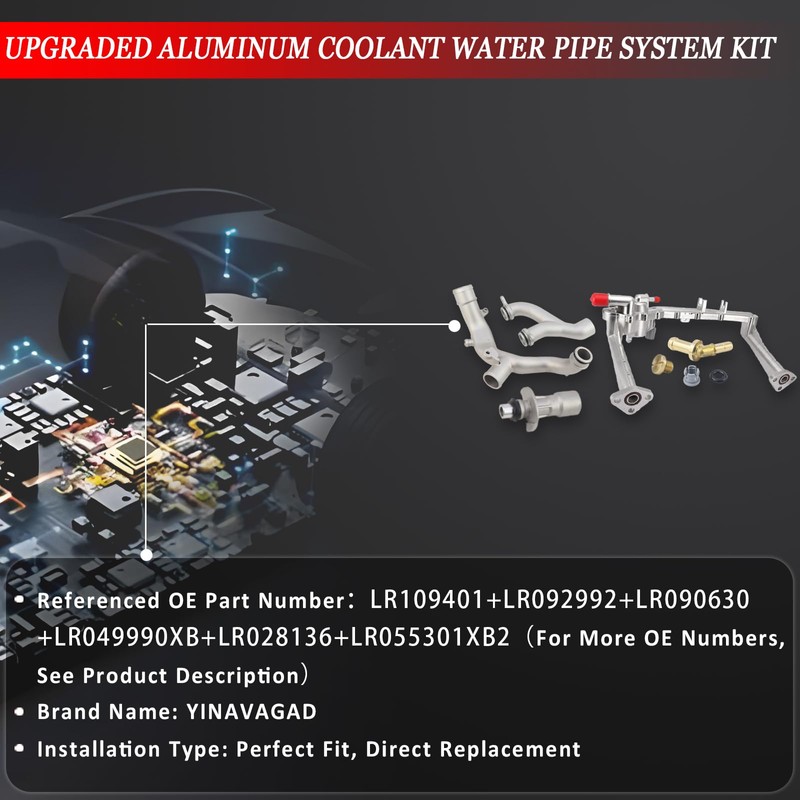 YINAVAGAD Upgraded Aluminum Coolant Water Pipe System Kit for Land Rover Range Rover Sport LR4 2010-2021, for Jaguar XF XJ XE 3.0L V6, Replaces LR109401 LR092992 LR090630 LR049990