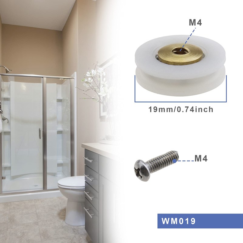 YINETTECH 8 x Single Shower Door Roller V Groove 19mm Rollers with M4 Screws