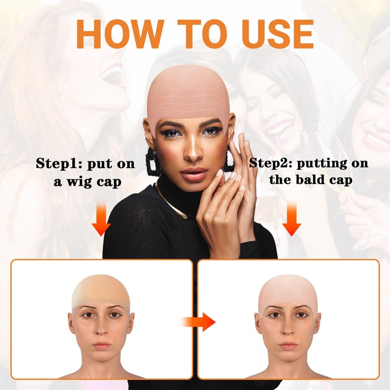 - Easy to Use: Applying our bald cap is easy. Secure it with liquid latex, blend the edges with makeup for a seamless look, and trim for a perfect fit. The latex is easily removed with alcohol or warm water, making maintenance simple.