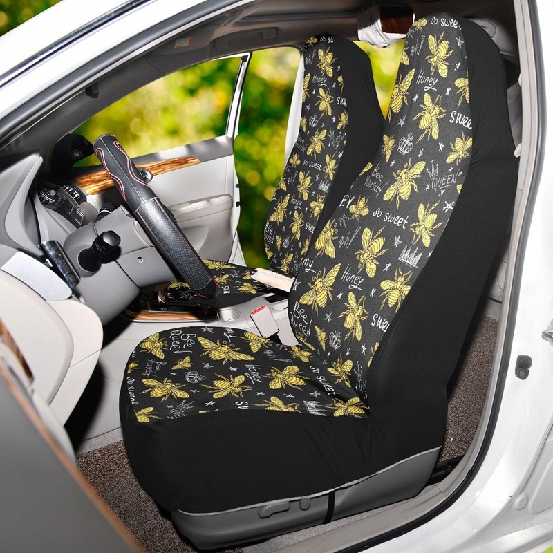 - Size: Package includes 2 front seat cushion covers, universal size 18.8x51.9 inches/48x132 cm; Our cute flying bees seat covers for cars can be stretched to fit with most sedans, trucks and SUV bucket style seats; Easy to maintain and clean, can be used in all seasons