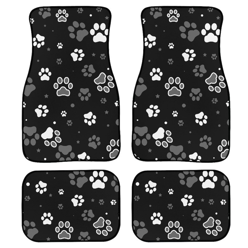YINGQIGUAN Paw Print Car Floor Mats Carpet Universal Abstract Dog Footprints Grey White Paws and Stars Floor Mats for Cars Vehicle Front Rear Foot Rugs Cute Animal Claws Car Accessories for Trucks
