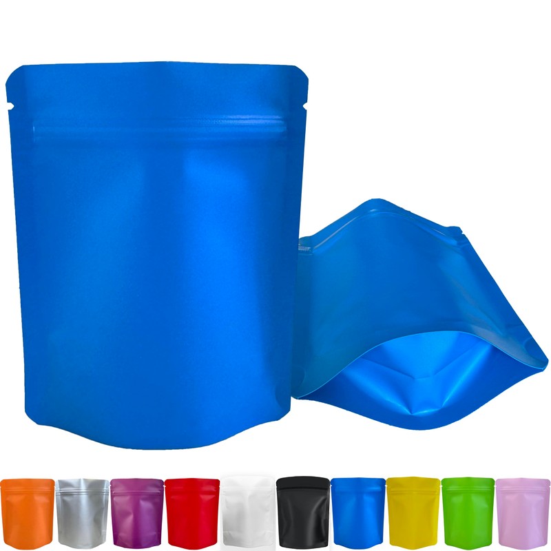 YINGZON 100 Pack Premium Smell Proof Mylar Bags, Resealable Food Storage Bags with Double-sided Matte Printing, 5" x 4" Aluminum Foil Stand-up Packaging Bags. (Blue)