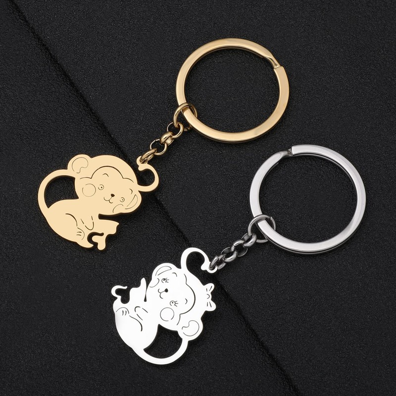 - Material :The monkey keychains are made of stainless steel with polishing process. Light weight, nickel free, strong,durable,hypoallergenic. The keychains is not easy to fade and rust; It is not easy to deform.It is available in gold and silver plated colours.