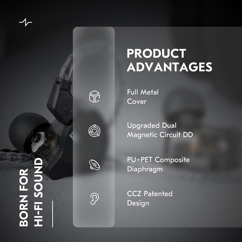 - (Color Options) The CCZ SOLO earphones are equipped with dual magnetic circuit DD and composite diaphragm, so you can enjoy powerful sound. Furthermore, it adopts Hi-Fi high quality sound technology that faithfully reproduces the details of the music, giving you the immersive experience of listening to live venues. Especially balanced sound quality from treble to bass, this product will satisfy music fans. In addition, the noise canceling function reduces ambient noise while enjoying music, so you can enjoy music with immersive sound even on noisy subways