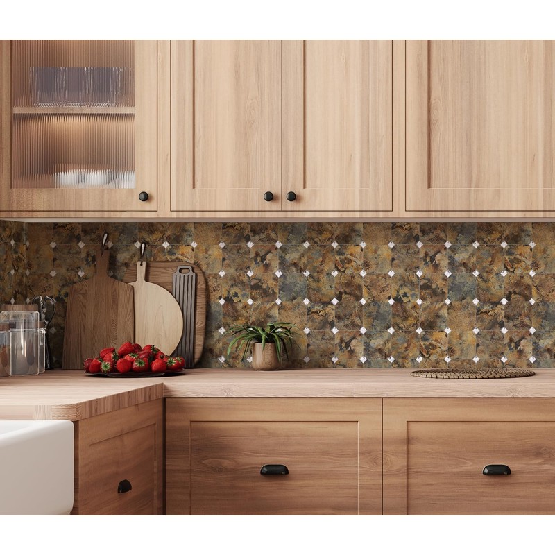 Yipscazo 10 Sheets Peel and Stick Diamonds Tile Backsplash, PVC Backsplash Tiles,Stick on Backsplash for Kitchen (12'' X 12'', Rustic)