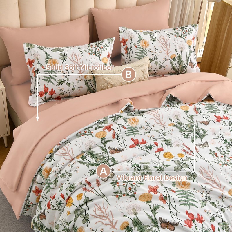 Farmhouse Floral Design: Vibrant flowers and butterfly printed,this floral comforter set brings a fresh, farmhouse, sophisticated look to your bedroom. Side A with beautiful patterns, side B with solid color, it will bright your beedroom, enhance sleep and relaxation