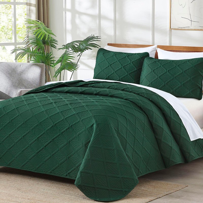 - 【ULTRA SOFT】Emerald green quilt set is made from premium microfiber, soft, breathable and comfortable. Lightweight quilt is also perfect for family with pets or kids, help you sleep well and is a great sleeping companion.