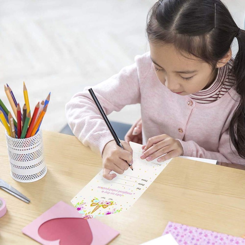 YiRAN Unicorn Girls Party Invitations - Pink and Gold Envelopes Style Ready to Write (Pack 16)
