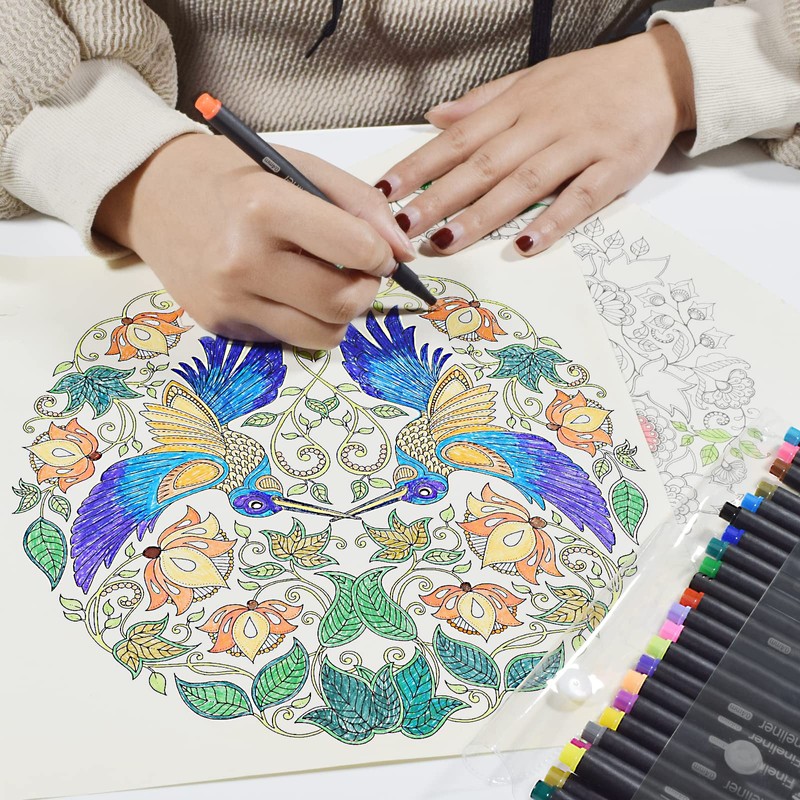 - Water-based ink, Minimal bleed thru, these pens create fine lines and intense water-based colors. Ideal for Coloring Books for Journaling.