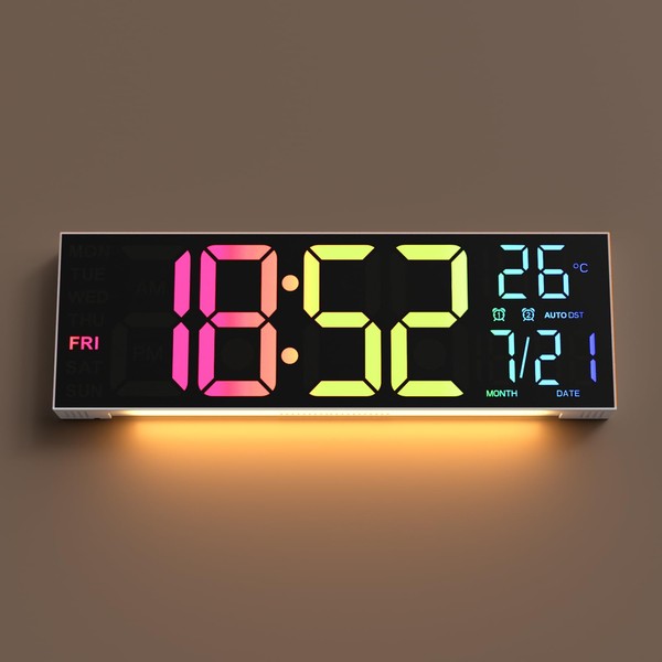 YISILE Digital Wall Clock Large Display, 16.2" Large Digital Wall Clock with RGB Color Changing Remote Control, Automatic Brightness Dimmer with Night Lights, Auto DST, Date Week(White)