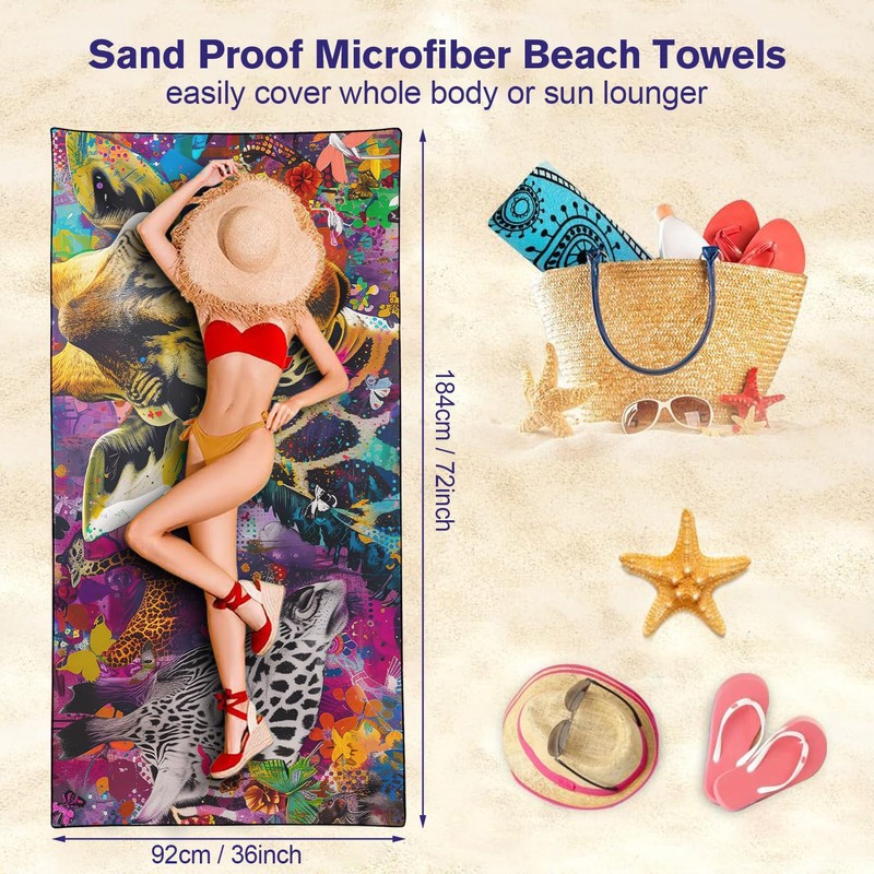- The oversized beach towel measures 90cmx180cm, it's big enough to cover your body or sun lounger, yet lightweight and compact.