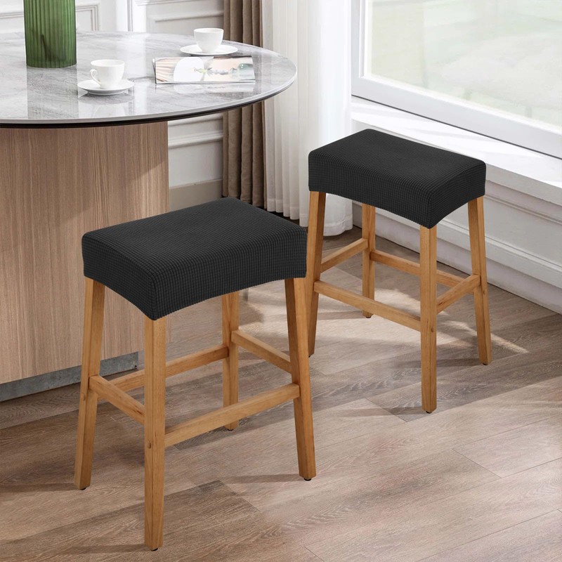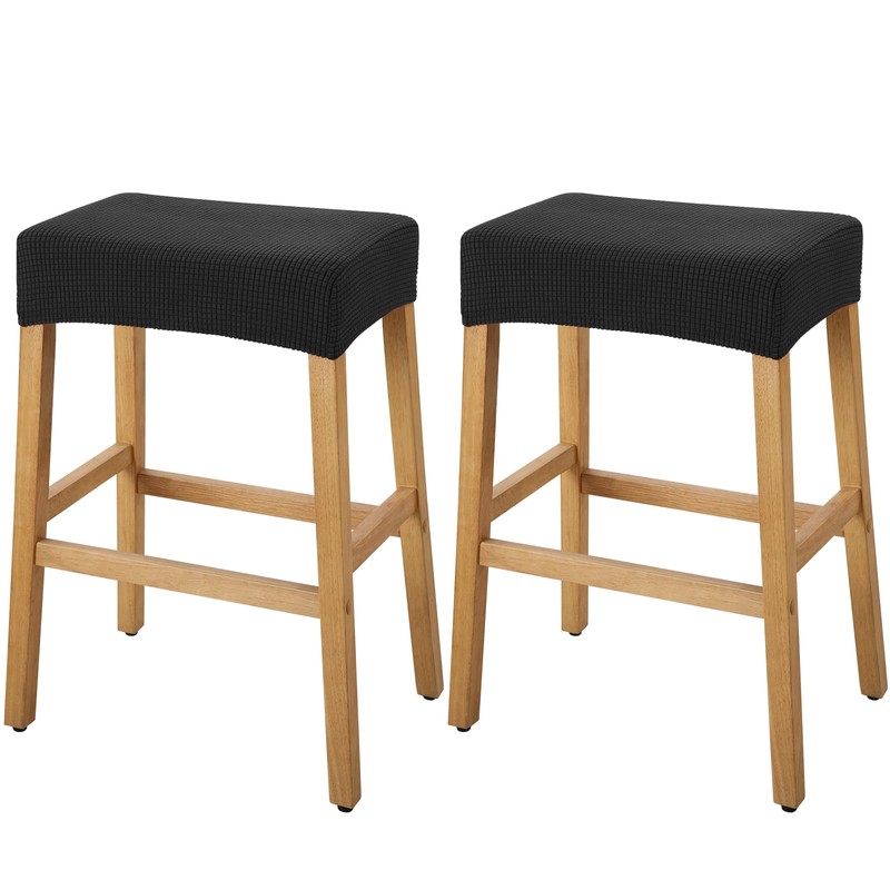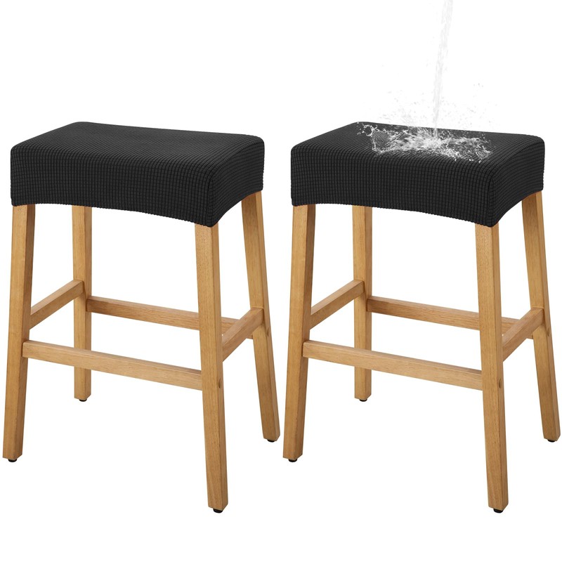 YISUN Stool Covers Rectangle - 2 Pack Stretch Waterproof Saddle Seat Cover Counter Bar Stools Bar Chairs Covers Kitchen Island Chairs Cushion Protector (2, Black)