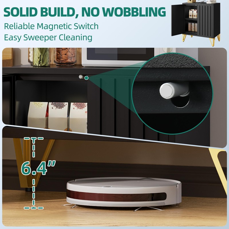• Large Storage Space: With spacious top open shelf for your coffee machine, toaster, Microwave or other items, and has 2 large shelves inside the cabinet doors, which can store tableware, wine bottles, or other household appliances, etc. The storage cabinet provides more storage space to store your items