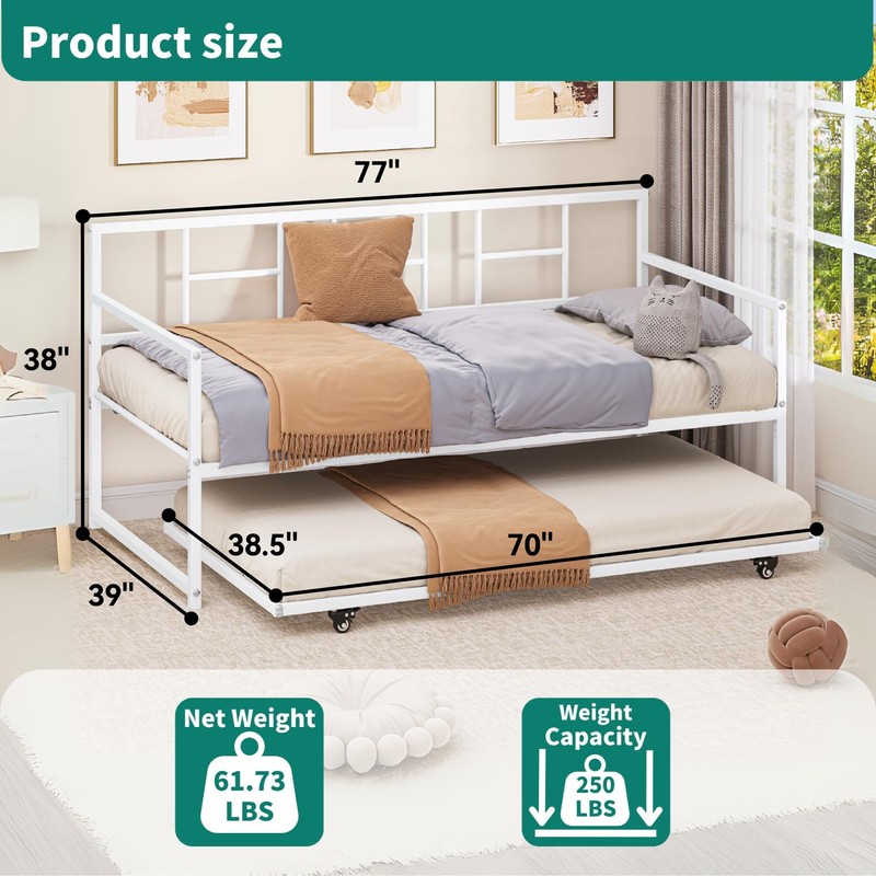 - Durable And Stable: Durable and distinct iron frame adds a unique decoration to your trundle bed; The extra load-bearing support tube on the three sides offers enough comfort and additional stability when you relax