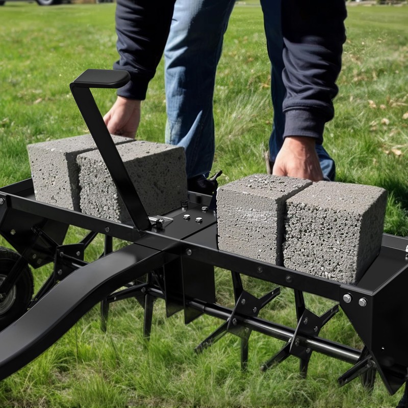 • Anti-Rust Coating:Constructed from steel and finished with a black rust-resistant coating, this tow behind lawn aerator tool is built to last, ensuring long-term durability and performance in all weather conditions