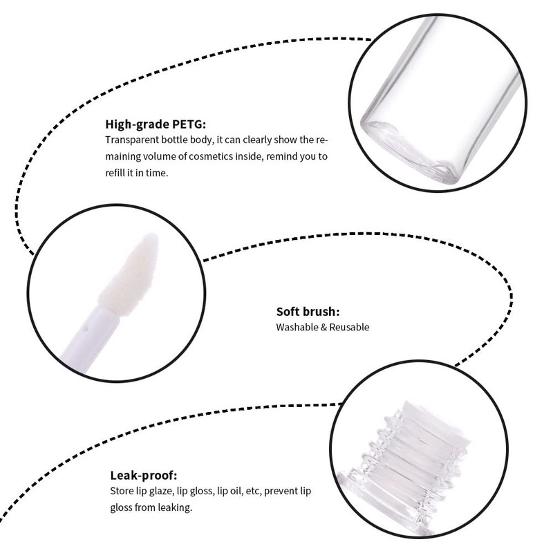 - Cosméticos separados: divide la botella grande de brillo de labios en el mini recipiente de bálsamo labial transparente, no contaminará todo el brillo de labios debido al uso diario, hace que tu brillo de labios sea nuevo todo el camino. El cuerpo transparente te hace ver fácilmente el volumen restante de cosméticos en tubo de brillo de labios claramente.