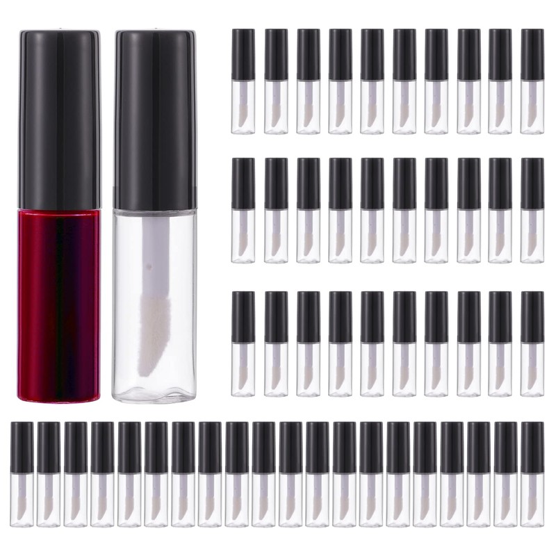 - Tamaño de muestra: incluye 50 mini tubos transparentes de brillo de labios con tapa negra, varita y tapón de goma. Adecuado para contener brillo de labios, bálsamo de labios, esmalte de labios y base líquida. Tamaño: 12 x 12 x 52,4 mm. Capacidad: 1,8 ml. Peso: 3,6 g.