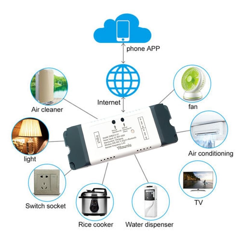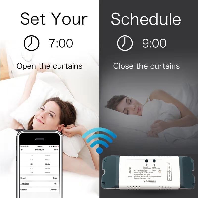 Yitouniu EWeLink 2CH 85V-250V Smart WiFi Switch Relay, Point/Self-Locking Switch Module,DIY Smart Home, APP Control, Compatible with Alexa Google Home