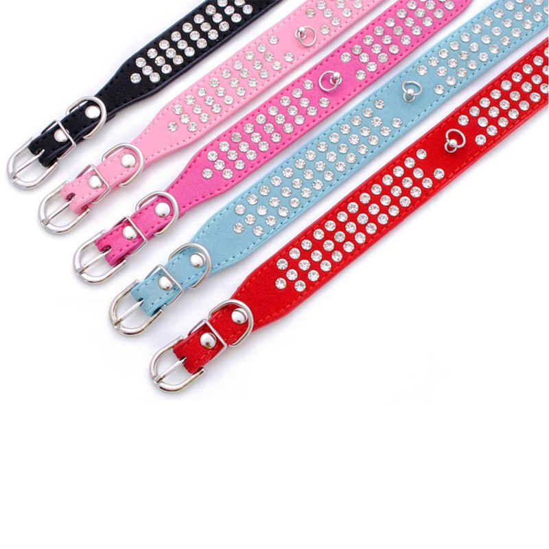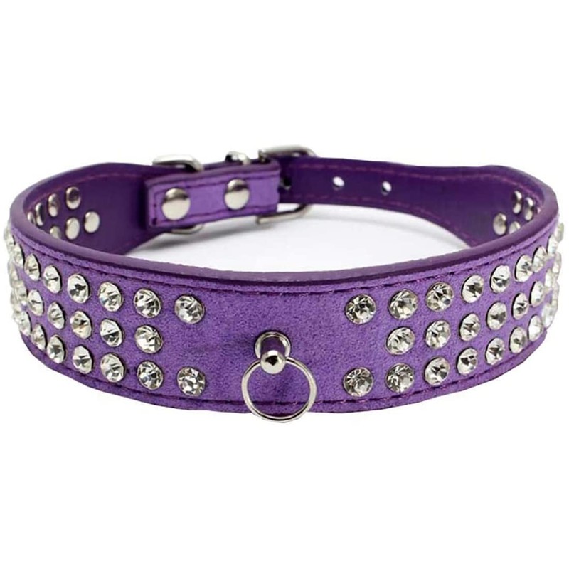 Yiwong Bling Crystal Dog Collar Suede Dog Chain with O Ring for Dogs, Soft Suede with Shiny Rhinestone Collar for Dogs