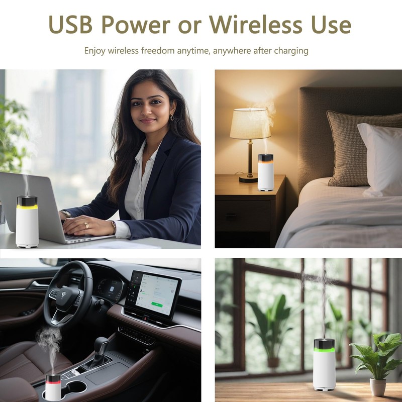 - 【True Portability & Complete Package】:Move your essential oil diffuser freely - no outlets needed for vehicles, home, or travel.*Charging Note: Use included USB cable. Charge depleted batteries﹥10 mins before plugged-in operation. Green indicator = fully charged.*Includes: diffuser, USB-C cable, manual
