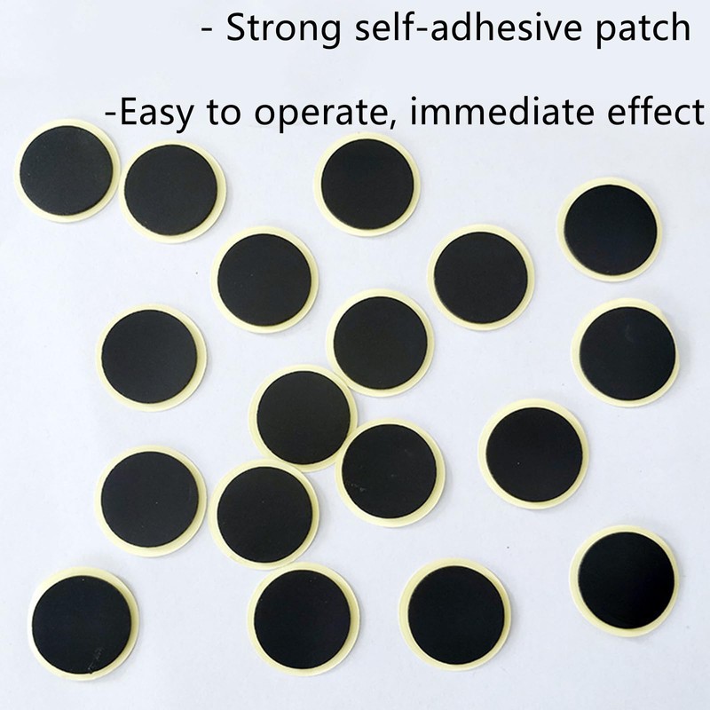 - Self-Adhesive Bicycle Tire Patch Kit: Bicycle Tire Patch Kit features strong self-adhesive patches designed to work effortlessly. No need for glue, simply apply the patch for an instant fix