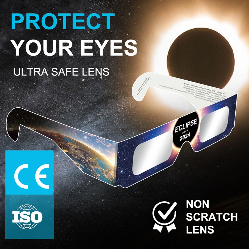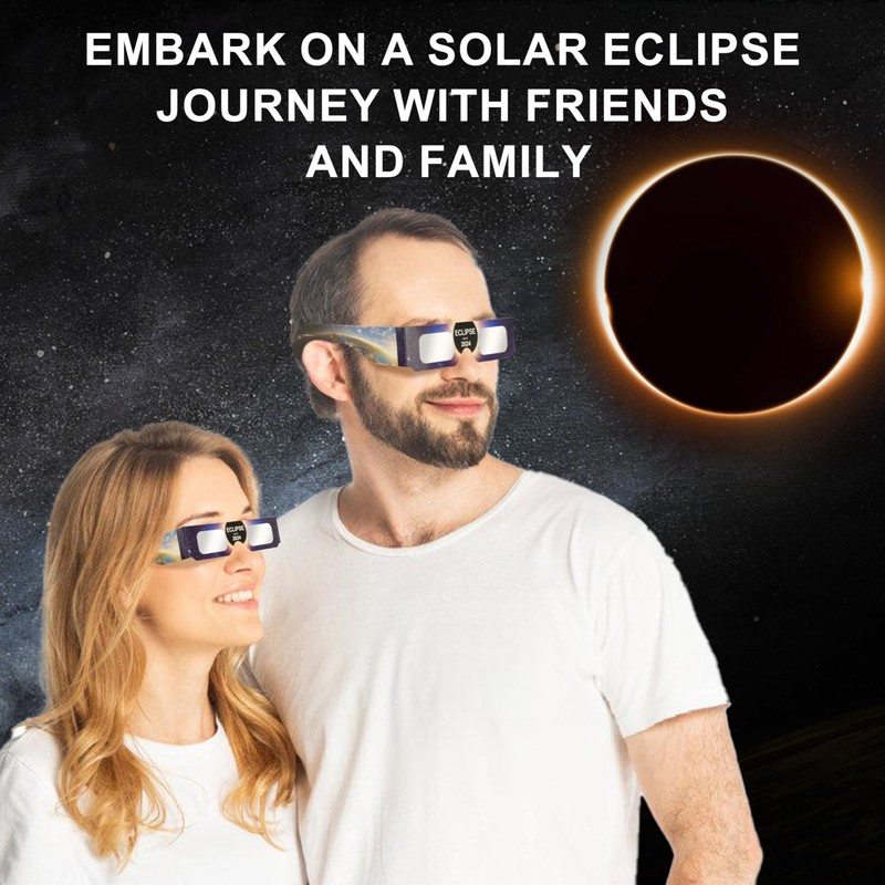 - Safe Solar Viewing for Eye Protection: Our plastic solar eclipse glasses are safe for direct sun viewing. It can filters outdangerous ultraviolet (UV) and infrared (IR) rays and 99.999% of intense visible light. It ensures that your eyes are fully protected from the damaging effects of the sun's rays while still letting you enjoy the sun's be.