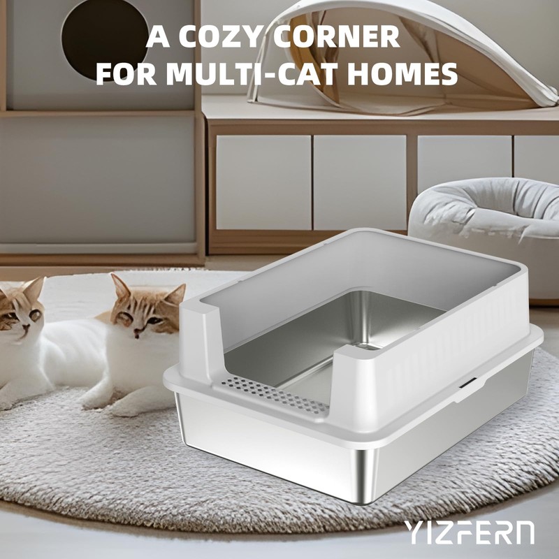 - 【SAFETY-FIRST ROUNDED CORNERS】 YIZFERN stainless steel cat litter box features smooth, rounded edges to protect playful cats from bumps, ensuring safety in any home