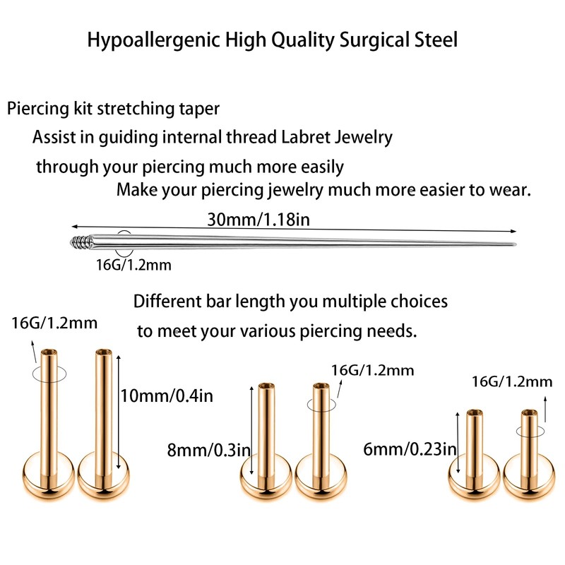 - Size 16G (1.2mm),Length 0.23inch (6mm),Top Jewelry Size 3mm-4mm