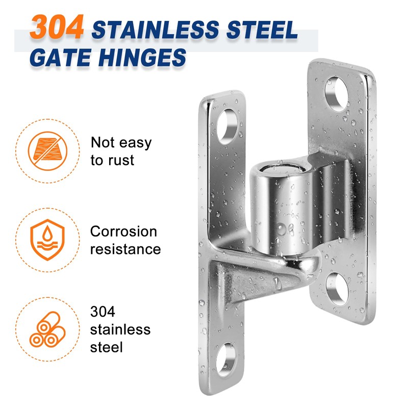 - 【304 Gate Hinges】 Heavy duty gate hinges is made of high quality 304 stainless steel material,not easy to rust and corrosion resistance. With a smooth surface finish, outdoor door installation is beautiful and durable