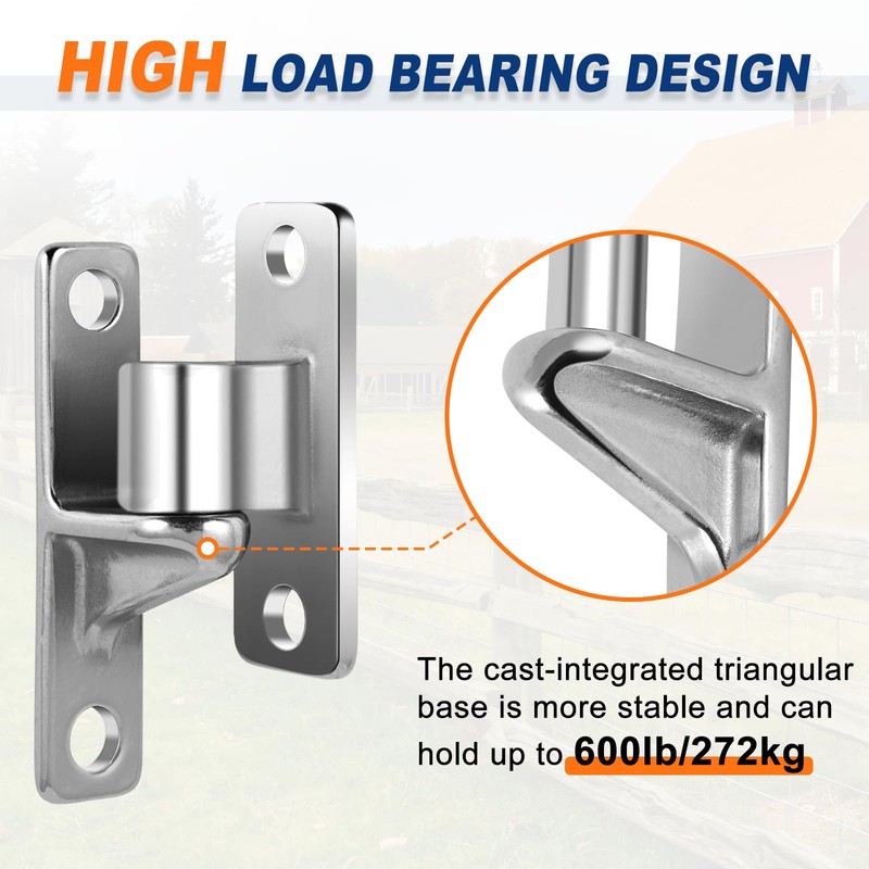 - 【High Load Bearing Design】The cast-integrated triangular base is strong and stable, allowing heavy wooden gate hinges to hold up to 600lb/272 kg