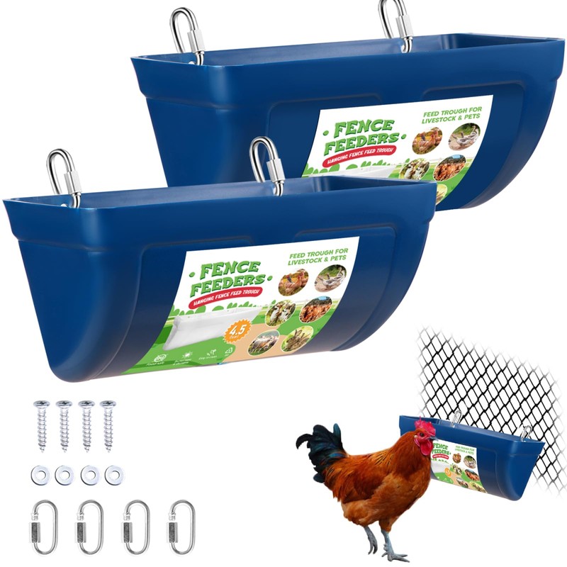 - ✔ EASY TO INSTALL: The feeding trough can be hung on the wire mesh or installed on the fence or wall, which is very easy to clean.