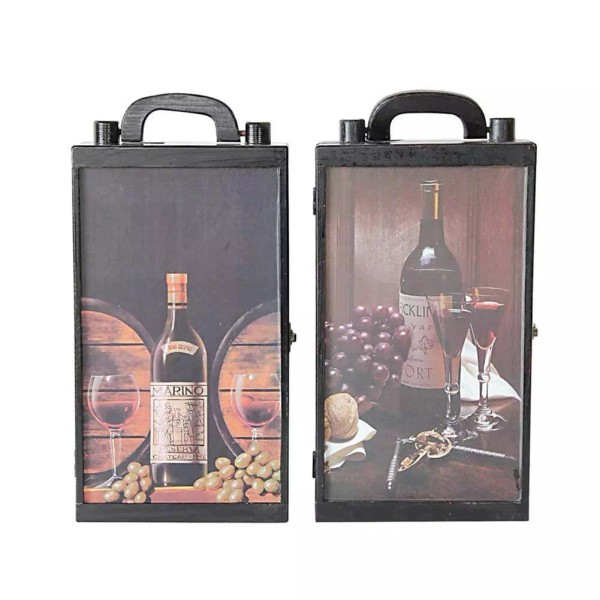 YK DECOR S/2 Wood Wine Box Carrying Case Double Bottle Wine Gift Box Holder with Handle