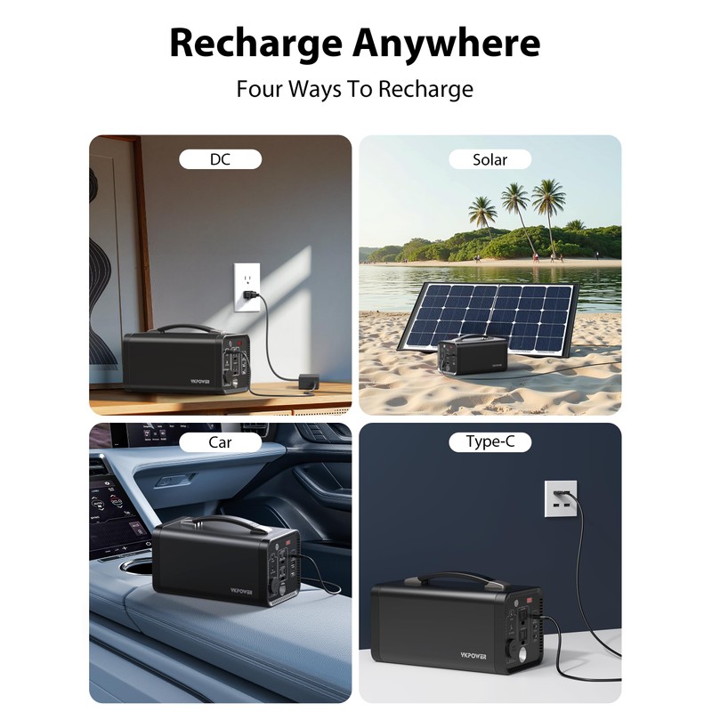 - 4 Charging Methods : This power bank can be recharged via a wall outlet, PD port, car charger, or a 50-100W solar panel (not included). Whether you're camping, traveling, or relaxing at home, it ensures you stay powered and connected at all times.
