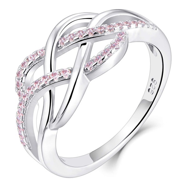 YL Celtic Knot Rings 925 Sterling Silver Twisted Knot Ring 18k White Gold Plated Created Pink Tourmaline Infinity Statement Rings-size8