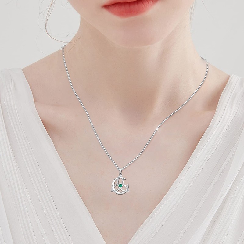 This Celtic knot necklace is made of the finest 925 sterling silver with white gold plating and manual polishing. It is designed to prevent tarnishing. Set with 12 cubic zirconia birthstones.