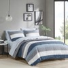 - Transform your bedroom into a serene with this stripe comforter set, combining shades of blue and grey for a refreshing appeal.