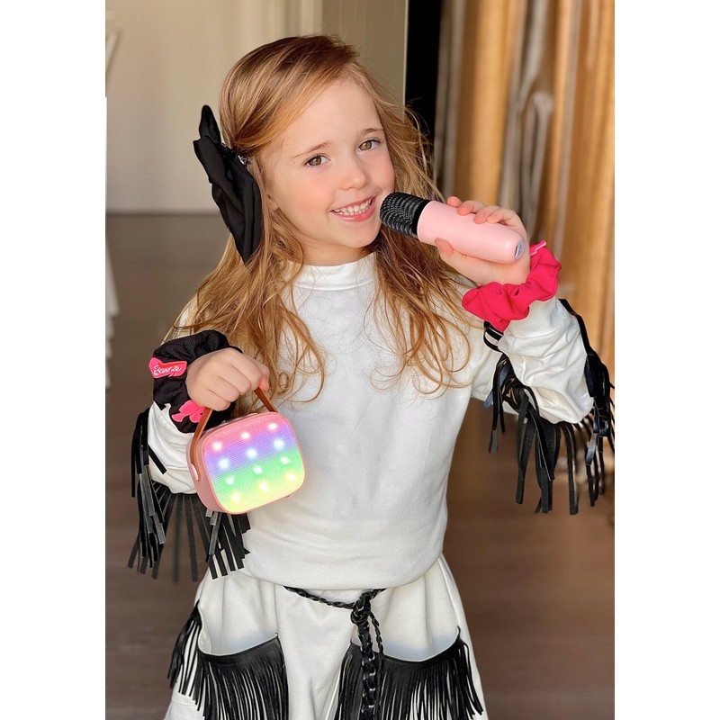 - Multi function Karaoke Machine: Come with kinds of magic voices, fun and interesting for kids toys. The LED lights beats with the rhythm of the music, creating a fun atmosphere. Headphone output on back. Perfect for singing practice, home family karaoke, small enough to bring when you travel