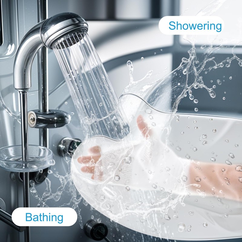 • Wasserdichtes Material: Duschschutz hand besteht aus hochelastischem wasserdichtem Stoff und CR-Verbundmaterial, das einen festen Sitz gewährleistet und das Eindringen von Wasser verhindert. Der wasserdichtere Handschutz schützt Bandagen, Wunden und verletzte Stellen vor Feuchtigkeit und verringert das Infektionsrisiko