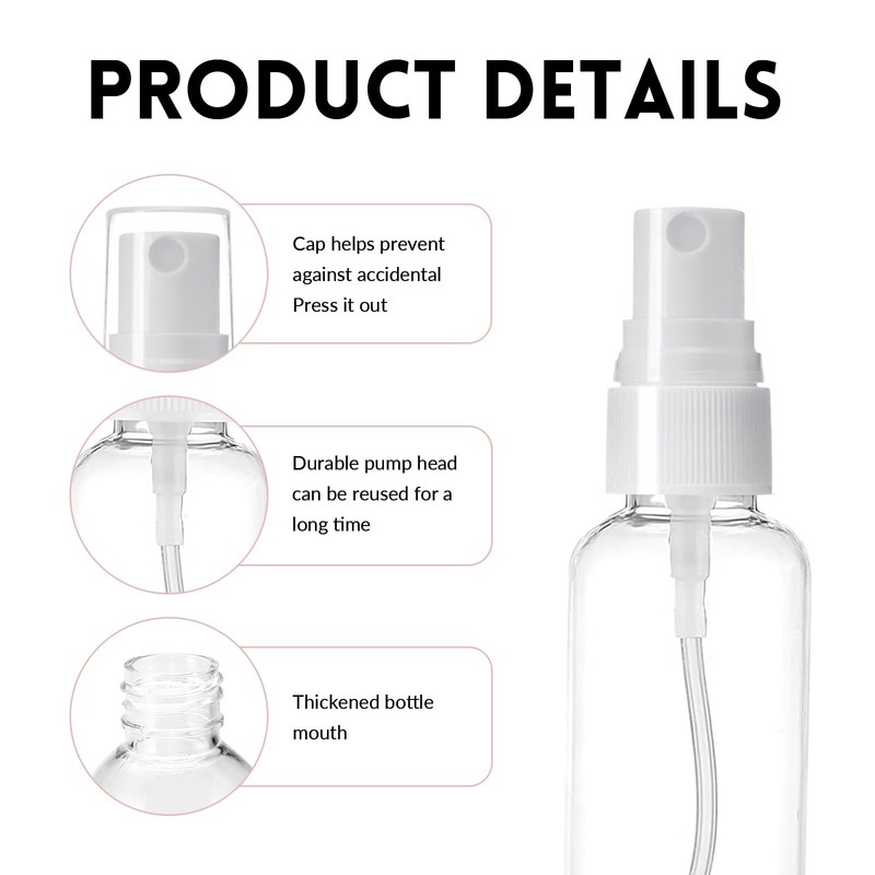 • Premium Material:Made of durable, odorless clear plastic, refillable with fine mist and long spraying range.