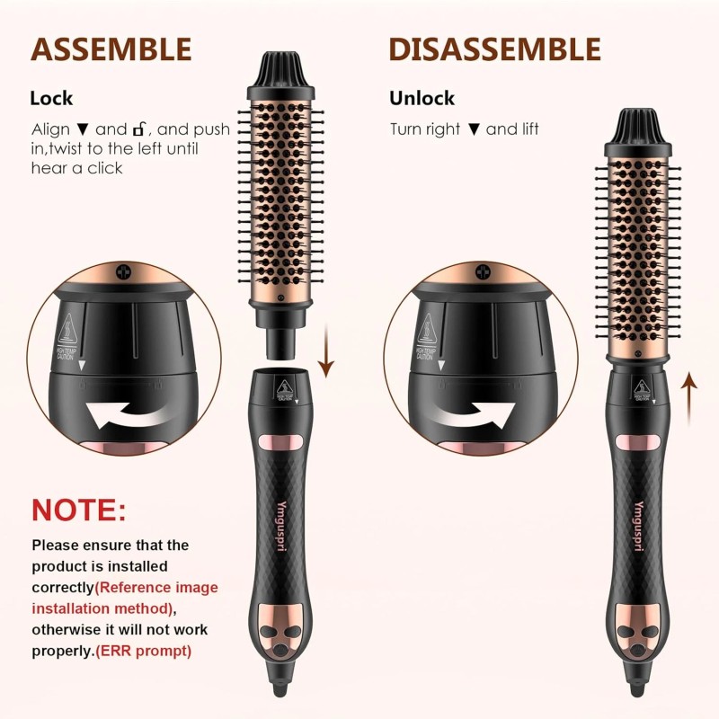 - ❣️【3-in-1 Curling lron & Brush】The Ymguspri Thermal Hair Brush seamlessly merges ceramic curling iron with detangling brush functionality, engineered with premium tangle-free bristles and an anti-static ion system, it glides smoothly through hair to reduce frizz and split ends while creating long-lasting styles, enabling effortless transitions between crafting medium to loose curls and waves, sleek straightening and natural everyday styles.