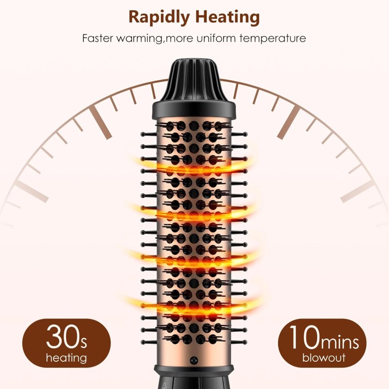 - ❣️【Home & Salon Pro】The thermal curling brush included silicone protective cap ensures safe storage and travel, complemented by an ergonomic lightweight design for precise control. Engineered for most hair types (including processed/damaged hair), this professional tool achieves blowout-smooth finishes or voluminous look in 10 minutes – equally effective for home users and salon artists. Additionally, the built-in temperature memory function makes styling even easier.