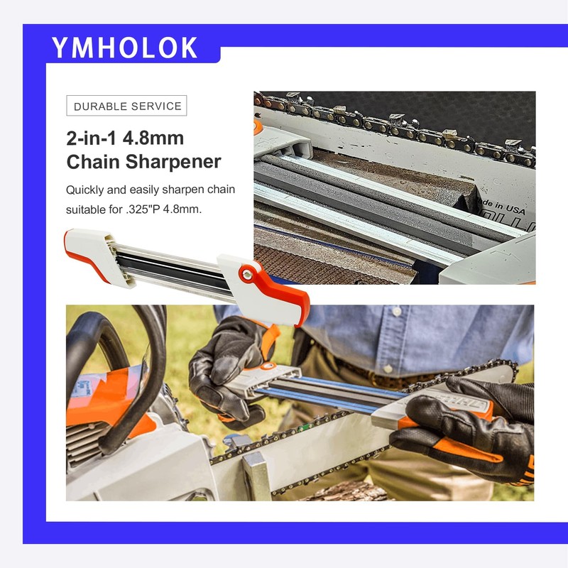 Ymholok Efficient Design 2-in-1 4.8mm Easy File Chainsaw Chain Sharpener Fit for Chain Pitch .325" Diameter 3/16",Easy File Chain Saw Sharpener Tool