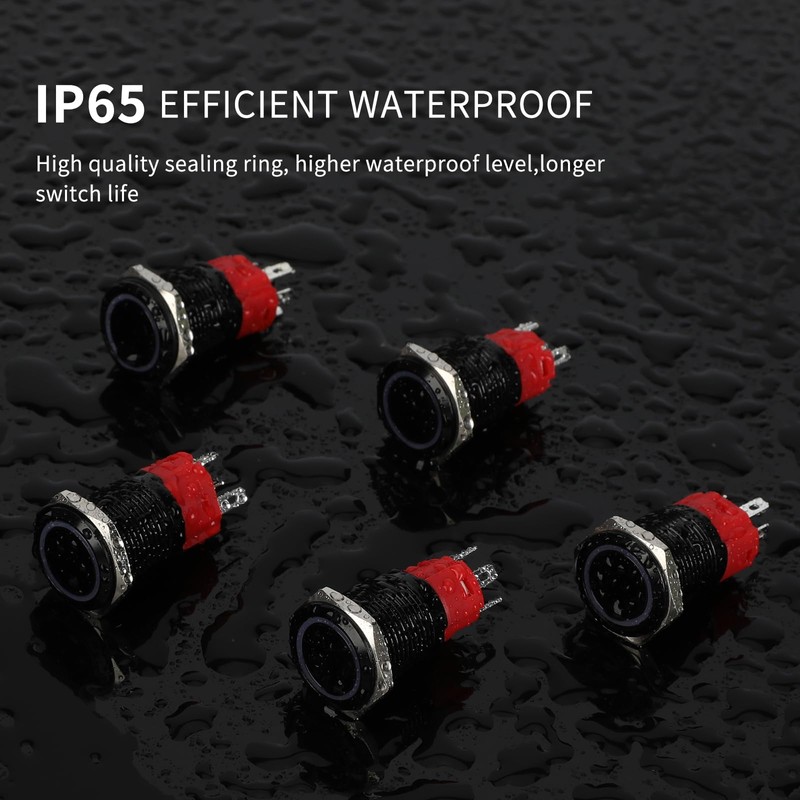 YMJSAN 16mm Latching Push Button Switch 12V DC On Off Self-Locking with LED Angel Eye Head for 0.63" Mounting Hole with Wire Socket Plug (Black Shell Red LED)